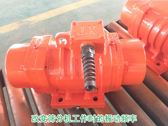 可改變篩分機工作時的振動頻率與其自身固有的振動頻率為不一致的頻率,可通過振動電機改變篩分機的振動頻率從而達到防止共振的目的。(可調節電機兩端的偏心塊夾角來改動激振力的大小,夾角小,激振力變大,振幅變大;反之,夾角變大,激振力變小,振幅變小)。
